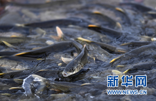 在剛察縣沙柳河過魚通道中洄游產(chǎn)卵的湟魚。羅穎 攝