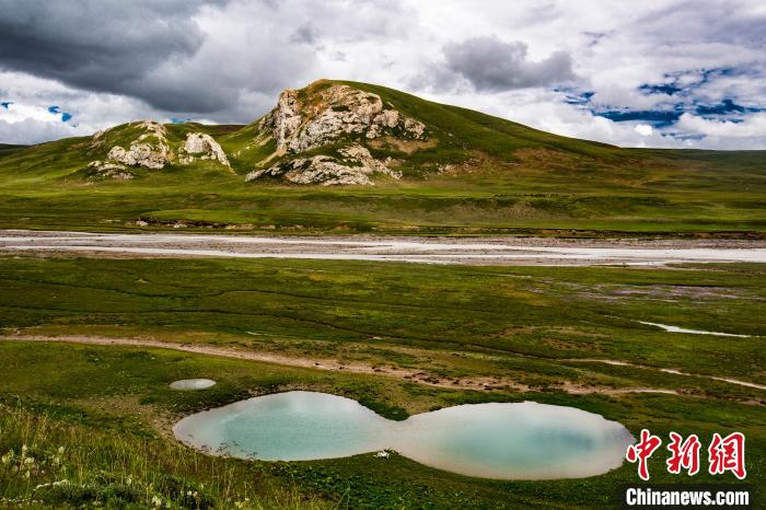 圖為位于雜多縣扎青鄉(xiāng)托乎曲大草原內的“眼睛湖”,由于兩湖在水大時連在一起,好像一副眼睛。功霸扎西達杰 攝