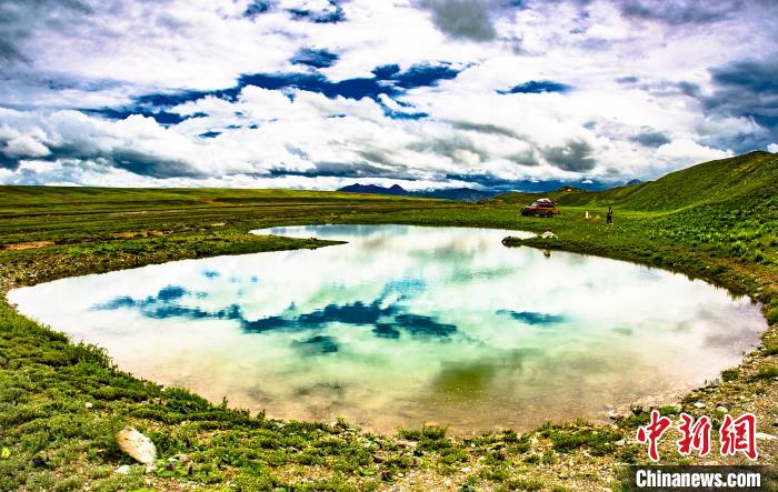圖為藍天倒映在眼睛湖中?!O睿 攝