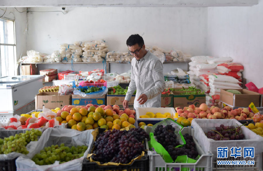 8月13日,尤拉太在返鄉(xiāng)前到興海縣一家水果店內(nèi)購物。新華社記者 張龍 攝