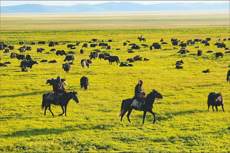 8月11日,牧民趕著成群的牦牛在若爾蓋熱爾大草原放牧。 蘭嵐 攝