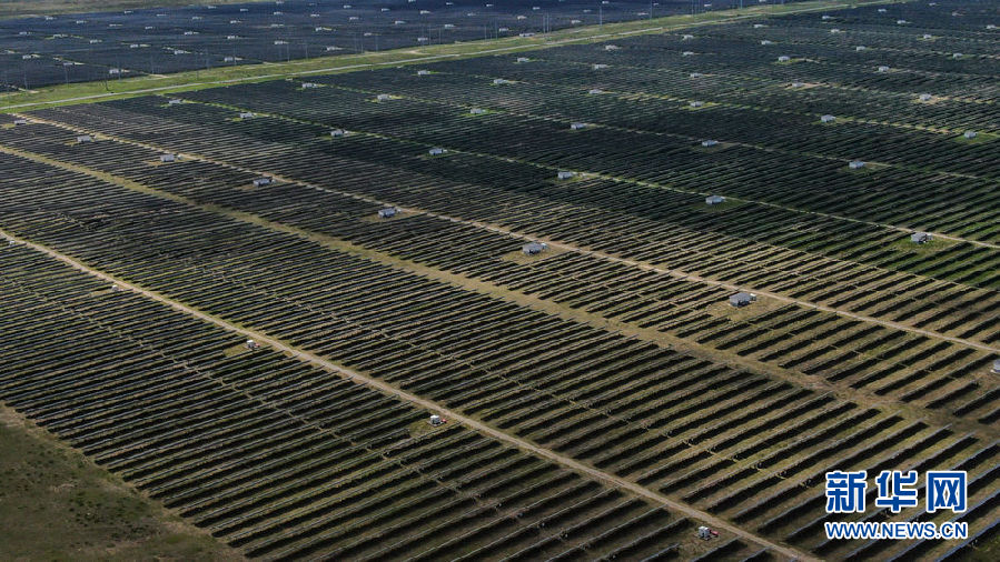 這是8月17日在青海省海南藏族自治州共和縣塔拉灘綠色產(chǎn)業(yè)發(fā)展園區(qū)拍攝的光伏電站(無人機照片)。新華社記者 張龍 攝