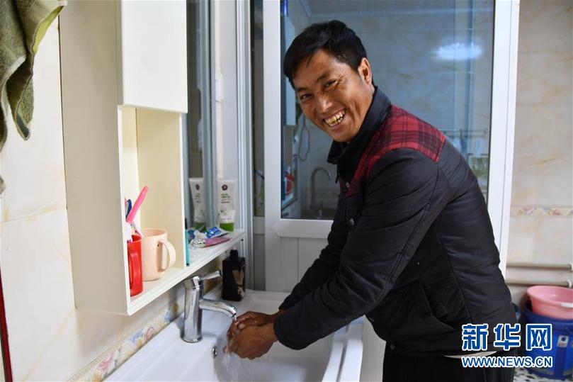 彭措在改建的衛(wèi)生間內(nèi)洗手(7月28日攝)。新華社記者 周相吉 攝