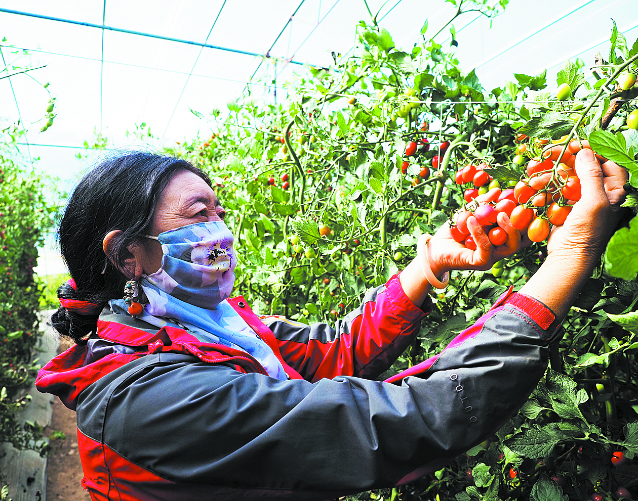 白瑪卓瑪采摘番茄。于譚陽(yáng) 攝