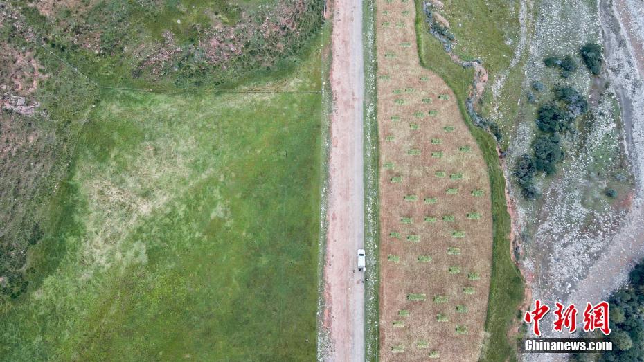 9月9日,航拍祁連山國家公園青海片區(qū)油葫蘆自然風(fēng)景區(qū)美景。初秋時(shí)節(jié),祁連山國家公園青海片區(qū)草地漸黃,天高云淡,勾勒出一幅色彩斑斕的秋日美景圖。中新社記者 李江寧 攝