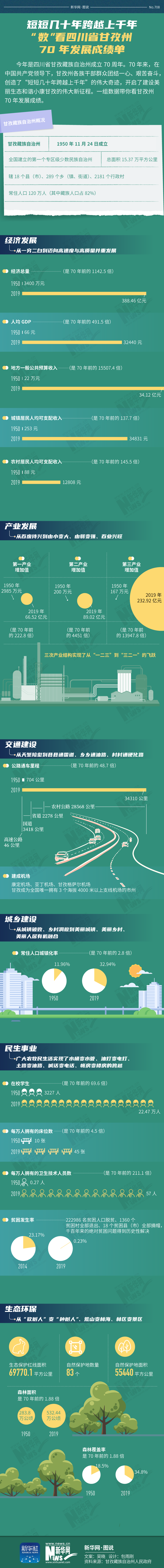 今年是四川省甘孜藏族自治州成立70周年。70年來,在中國共產(chǎn)黨領(lǐng)導(dǎo)下,甘孜州各族干部群眾團結(jié)一心、艱苦奮斗,創(chuàng)造了“短短幾十年跨越上千年”的偉大奇跡,開啟了建設(shè)美麗生態(tài)和諧小康甘孜的偉大新征程。一組數(shù)據(jù)帶你看甘孜州70年發(fā)展成績。