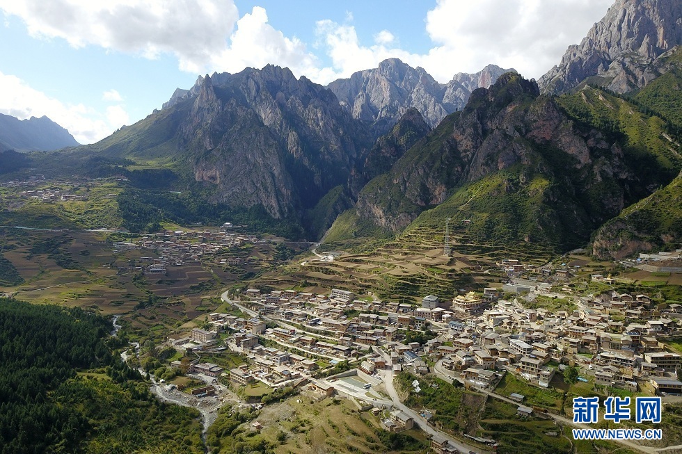 9月9日在甘肅省甘南藏族自治州迭部縣益哇鎮(zhèn)拍攝的扎尕那村(無人機(jī)照片)。新華社記者 范培珅 攝