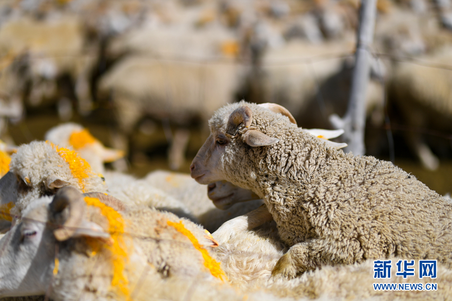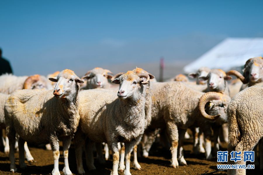 圖為金泰牧場內(nèi)的茶卡羊。新華網(wǎng) 郭勇良 攝