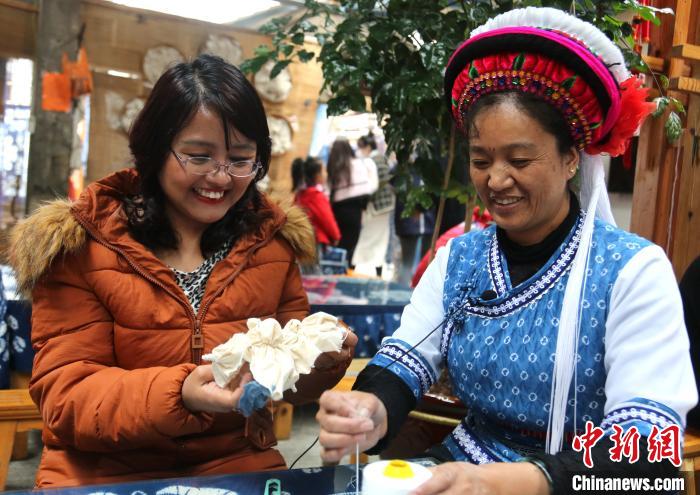 八九歲時,段樹銀便接觸扎染,“我們在白族扎染博物館邀請游客親身體驗扎染技藝,現(xiàn)在,這項古老的技藝已經(jīng)應(yīng)用在家居用品、服裝上,我們扎染的原料純天然,很環(huán)保,對身體好,因而大家都喜歡。”