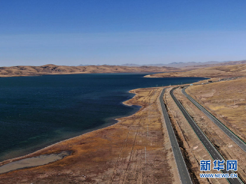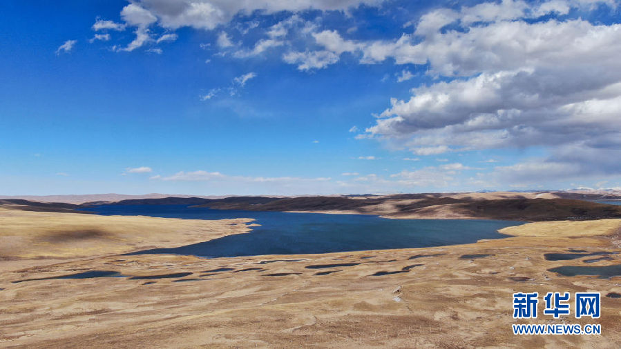 10月30日在青海省果洛藏族自治州瑪多縣境內(nèi)拍攝的一處湖泊(無人機(jī)照片)。新華社記者 張龍 攝
