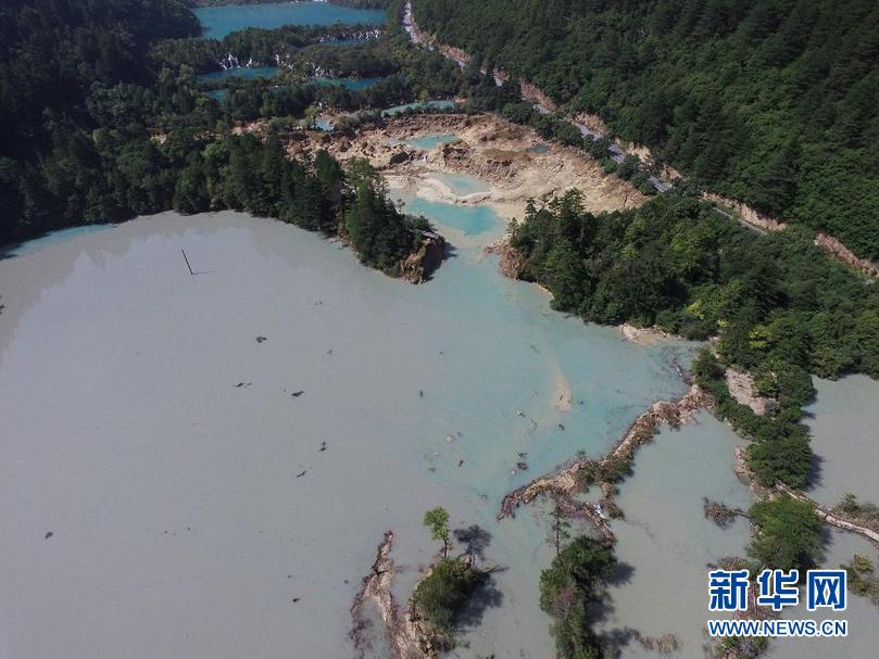 這是2017年九寨溝遭遇地震后的火花海景點(diǎn)(2017年8月9日攝,無(wú)人機(jī)照片)。新華社發(fā)