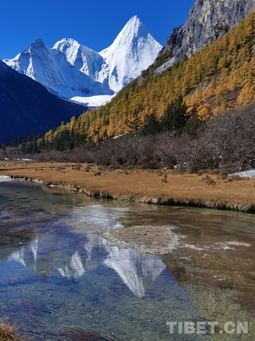 圖為稻城亞丁風景區(qū)的三座雪山之一的央邁勇雪山
