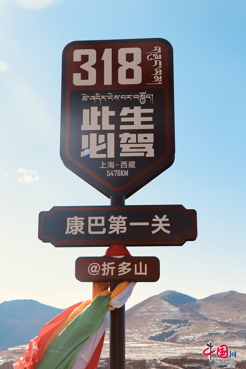 11月24日,藏文版“此生必駕318”打卡站牌落地康巴第一關(guān)、最美埡口——康定折多山。