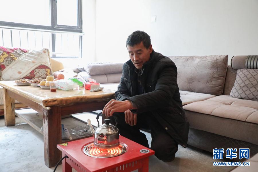 12月2日,在舟曲縣曲告納鎮(zhèn)田園生態(tài)小區(qū)易地扶貧搬遷集中安置點(diǎn),曲告納鎮(zhèn)茶坪村扎尕組村民在臨時(shí)安置的房屋內(nèi)煮茶。新華社記者 馬希平 攝