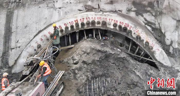 “都四”項(xiàng)目施家山隧道出口正在進(jìn)行打圍施工。四川交投集團(tuán)提供