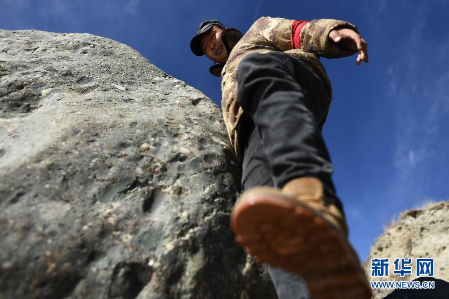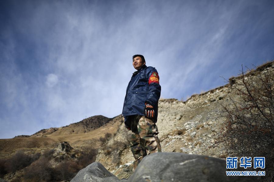 12月8日,祁連山國家公園扎麻什管護(hù)站生態(tài)管護(hù)員索安拉什旦在巡護(hù)途中。新華社記者 張宏祥 攝