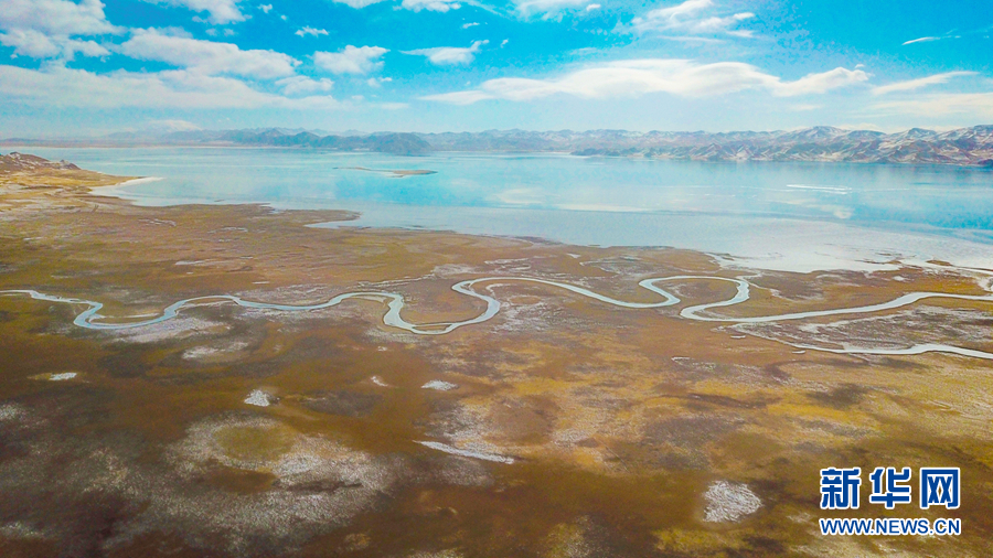 航拍:黃河源頭冬格措納湖 冰雪消融展風姿