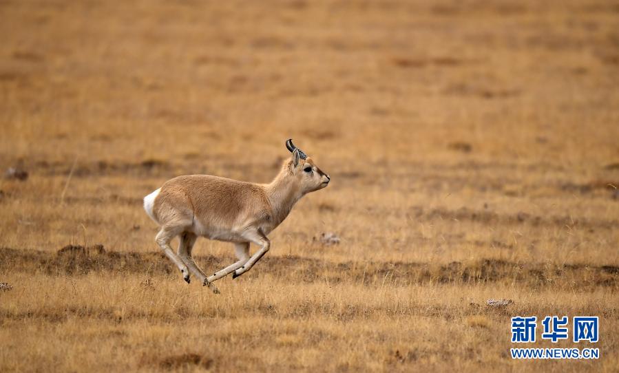 12月17日在青海海北剛察縣哈爾蓋鎮(zhèn)的草原上拍攝的普氏原羚。新華社記者 張宏祥 攝
