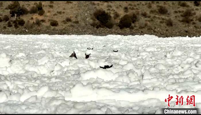 圖為被困冰面的白唇鹿。長江源園區(qū)曲麻萊管理處 供圖