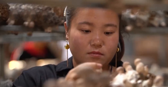 25歲的張小芳易地搬遷前居住在天??h哈溪鎮(zhèn),搬遷到了松山鎮(zhèn)秀杰村后,張小芳和家人商量做出了發(fā)展食用菌種植的決定。又一茬成熟的香菇該采摘了,今年張小芳弄了7個大棚,養(yǎng)了8000多個菌棒,忙不過來的她,聘請了村里的10名農(nóng)戶幫著一起采摘。