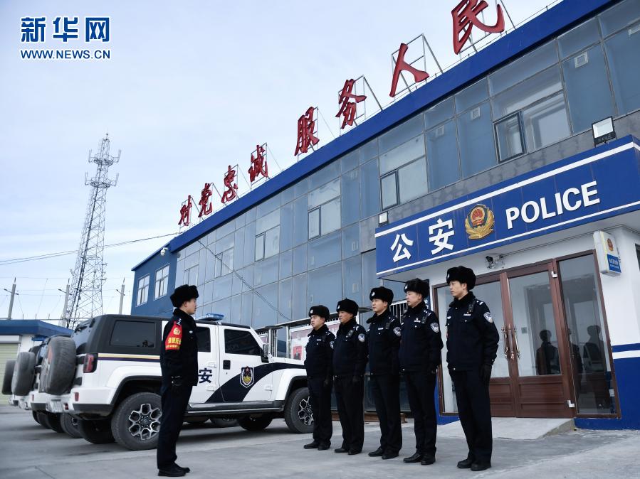 2月4日,沱沱河站派出所所長(zhǎng)沈衛(wèi)平(左一)在出發(fā)前給巡線民警安排任務(wù)。新華社記者 張龍 攝