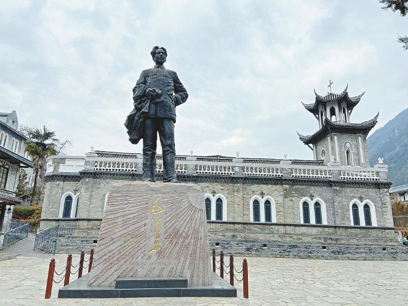 2004年,磨西天主教堂成為四川省重點文物保護(hù)單位。2015年5月30日,天主教堂一旁的磨西紅軍長征紀(jì)念館正式開館?,F(xiàn)在,這里成為中外游人瞻仰革命故地、感受紅軍長征精神的必去之地?!懊磕陙砟ノ鲄⒂^的民眾絡(luò)繹不絕?!毙苌辛终f,“2015年至2018年期間,磨西先后迎來很多紅軍后代參觀,其中包括周恩來、陳賡、宋任窮、張云逸、劉亞樓、孫繼先等革命先輩的后人?!?/p>