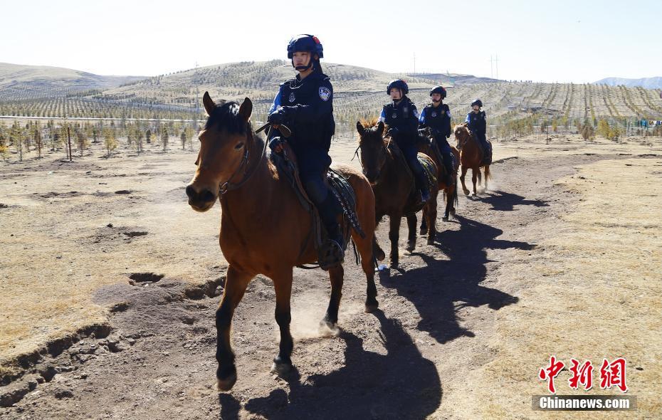 2月23日,青海省果洛藏族自治州公安局特警支隊直屬女子中隊的隊員們進行騎馬執(zhí)勤訓練。在高寒缺氧、紫外線強、平均海拔4000米以上的青海省果洛藏族自治州,隊員們堅持進行騎馬、射擊、野外適應性訓練。據(jù)了解,果洛州公安局特警支隊直屬女子中隊成立于2017年9月,由9名女特警組成,年齡最小的隊員24歲。中新社記者 馬銘言 攝
