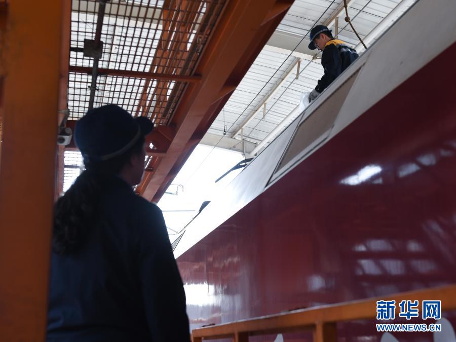 2月24日,在青藏鐵路公司西寧機(jī)務(wù)段整備車(chē)間,隔離開(kāi)關(guān)班組成員賀霞(前)與王麗在工作中。新華社記者 張龍 攝