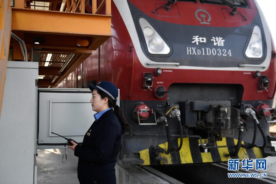 2月24日,在青藏鐵路公司西寧機(jī)務(wù)段整備車(chē)間,隔離開(kāi)關(guān)班組成員賀霞在工作中。新華社記者 張曼怡 攝