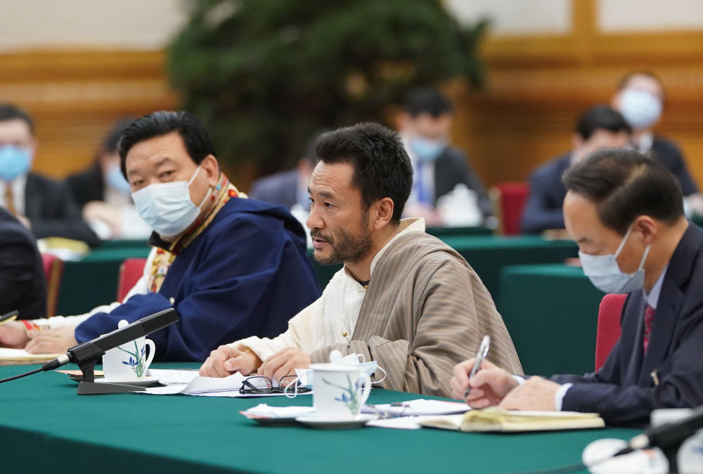 3月7日,在參加十三屆全國(guó)人大四次會(huì)議青海代表團(tuán)審議時(shí),扎西多杰就玉樹災(zāi)后重建新變化發(fā)言。新華社記者李學(xué)仁攝