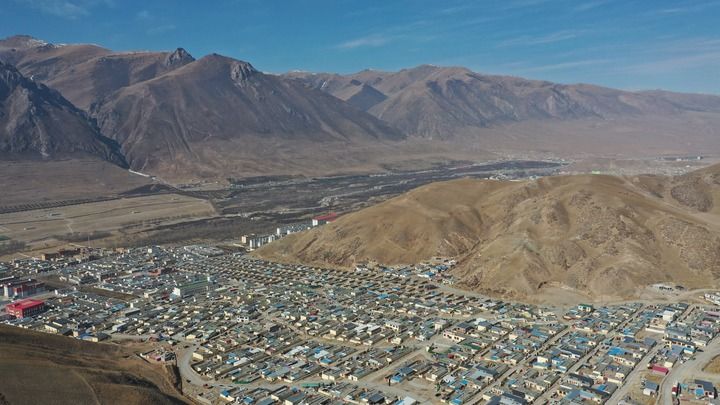 圖為2021年3月10日拍攝的玉樹市一角(地震時(shí)為扎西科臨時(shí)安置點(diǎn))。