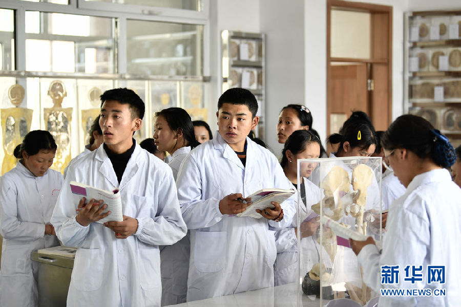 3月16日,在果洛藏族自治州職業(yè)技術(shù)學(xué)校,2020級護理專業(yè)學(xué)生在上課。新華社記者 張龍 攝