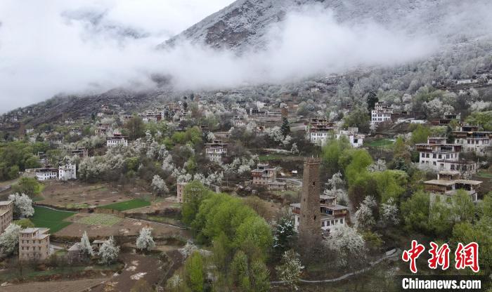 3月22日,素有“千碉之國(guó)”美譽(yù)的的四川甘孜藏族自治州丹巴縣雪后天晴,藏寨中大小形態(tài)各異的碉樓、涂抹成鮮艷的藏民居在白雪、梨花和綠樹(shù)掩映下構(gòu)成一幅獨(dú)特的藏家春色圖,一季梨花如雪的開(kāi)放,花如雪,雪似花,悠蕩在春風(fēng)里,一道絕美的風(fēng)景線(xiàn)讓四方游人陶醉。