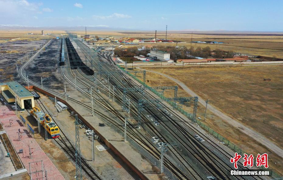 4月13日,青海省海北藏族自治州剛察縣,航拍青藏鐵路公司西寧供電段哈爾蓋工區(qū)負(fù)責(zé)維護(hù)的部分鐵路。中新社記者 馬銘言 攝