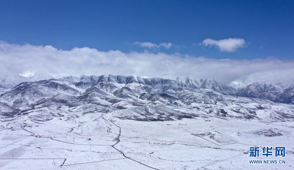 這是4月24日拍攝的祁連縣境內(nèi)雪景(無人機照片)。新華社記者 張宏祥 攝