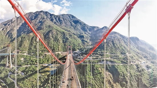 香麗高速虎跳峽金沙江特大橋首個索鞍吊裝成功