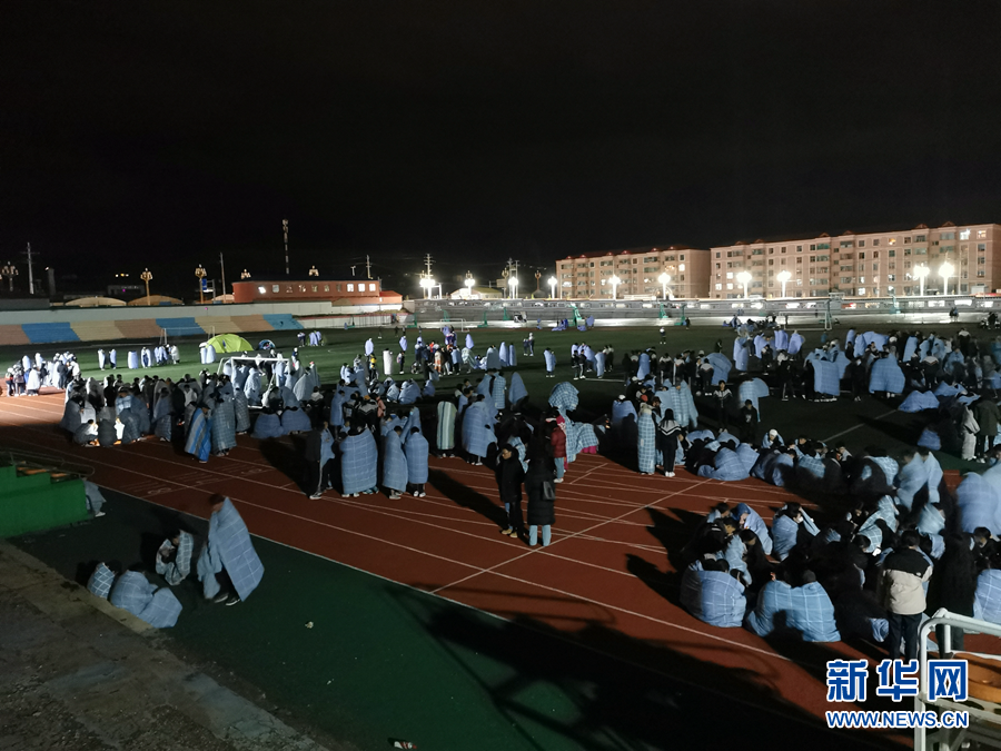 5月22日凌晨,在青海省果洛藏族自治州州府瑪沁縣,果洛州民族高級中學的學生在操場避險。新華社發(fā)