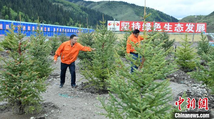 記者在試驗(yàn)基地現(xiàn)場(chǎng)看到,因施工開挖的草甸被切割成正方形,整齊堆放在一起,通過噴淋系統(tǒng)不時(shí)澆水。一旁的表土養(yǎng)護(hù)及苗木驗(yàn)證試驗(yàn)基地上,因施工開挖的表土也被集中堆放、攤平,經(jīng)過營(yíng)養(yǎng)培育后,栽種了白樺、冷杉、側(cè)柏、高山柳等多種高原樹木。