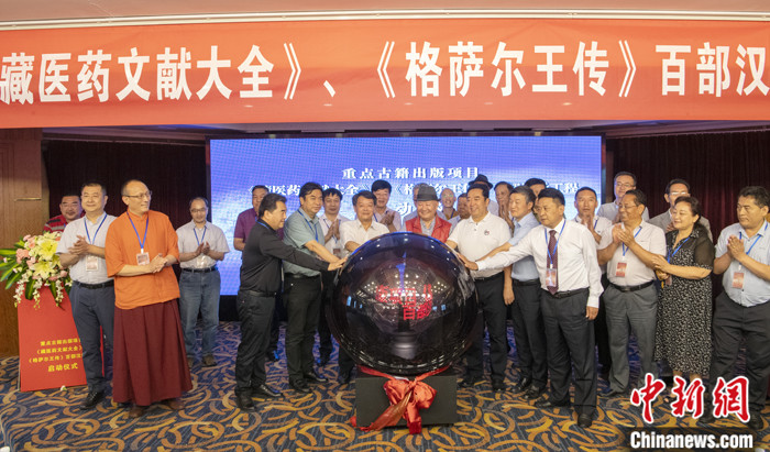 7月8日,四川成都,嘉賓共同啟動(dòng)《藏醫(yī)藥文獻(xiàn)大全》《格薩爾王傳》百部漢譯工程。中新社記者 劉忠俊 攝