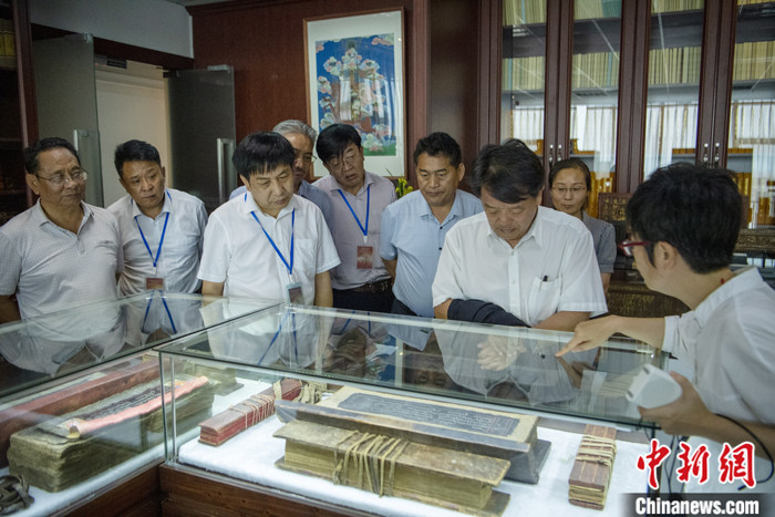 7月8日,四川成都,嘉賓們走進(jìn)《格薩爾》資料中心參觀館藏文物。中新社記者 劉忠俊 攝