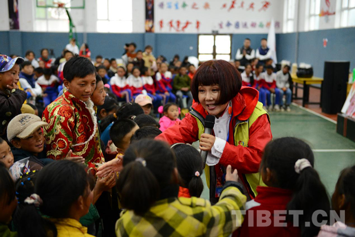 土燈尼瑪是道扎福利學(xué)校校長(zhǎng),他告訴我們,道扎福利學(xué)校是9年一貫制學(xué)校,孩子們最小的只有7個(gè)月,除了負(fù)責(zé)教學(xué)的老師,還有專(zhuān)職的工作人員照顧生活,相當(dāng)于孩子們的媽媽。平時(shí)小朋友們之間,年紀(jì)大的照顧年紀(jì)小的。今天,300個(gè)藏族小朋友和6個(gè)成長(zhǎng)營(yíng)的小朋友第一次一起探討了包蟲(chóng)病預(yù)防知識(shí)和公益活動(dòng)的意義,小手拉小手,孩子們都很開(kāi)心,能看到孩子臉上純凈的笑容,我們都很高興。