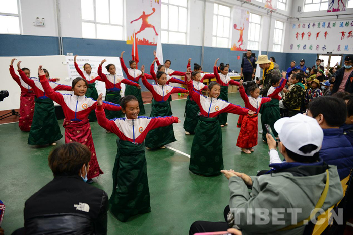 活動(dòng)在大家同跳鍋莊舞中結(jié)束,包蟲(chóng)病篩查團(tuán)隊(duì)、成長(zhǎng)營(yíng)、道扎福利學(xué)校全體師生、媒體人員350余人參與活動(dòng)。(中國(guó)西藏網(wǎng) 記者/王智霖)