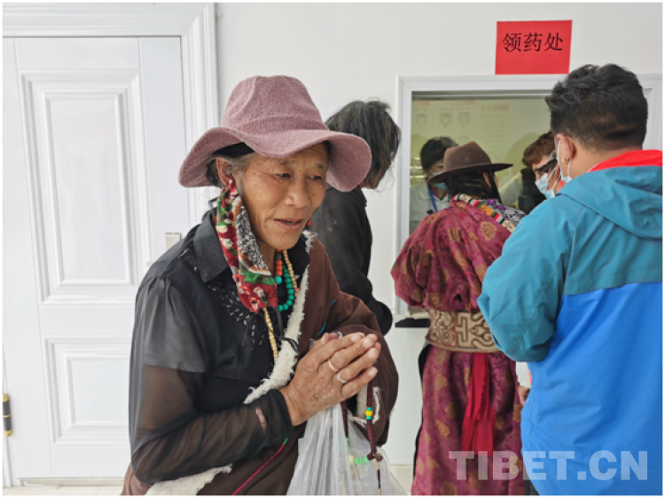 一名50多歲的藏族老人在領(lǐng)到免費(fèi)的藥品后,拉著志愿者的手感動(dòng)得流下眼淚。她說:你們太好了,看病給藥不要錢,謝謝你們!