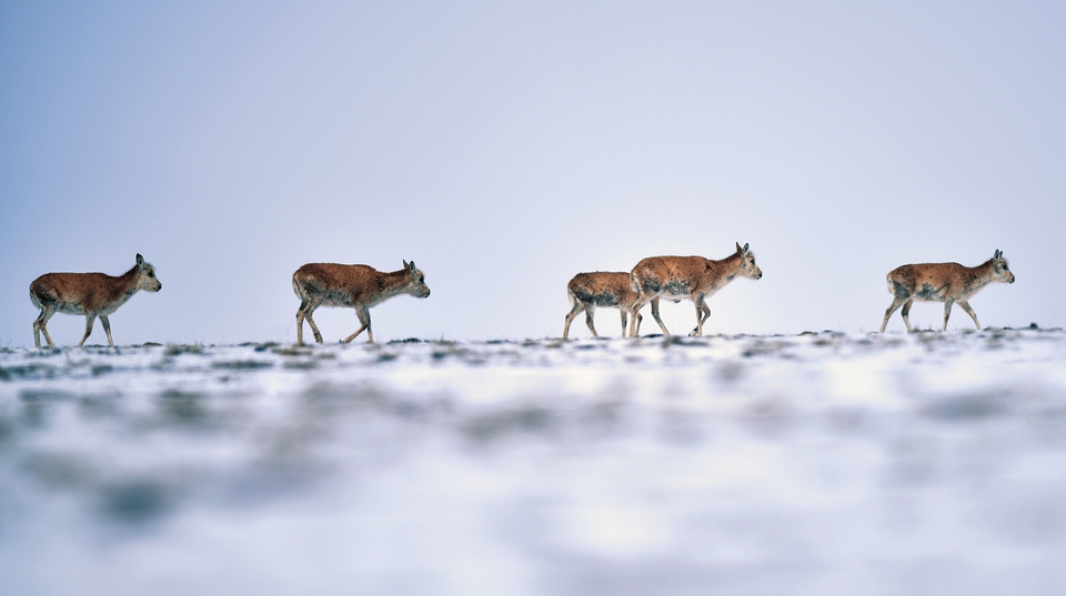 4月20日,藏羚羊在三江源可可西里地區(qū)活動(dòng)。新華社發(fā)