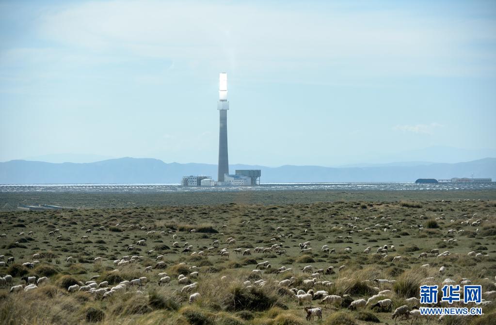 7月8日在青海省海南藏族自治州共和縣光伏產(chǎn)業(yè)園拍攝的一處塔式光熱發(fā)電項(xiàng)目。新華社 張曼怡 攝