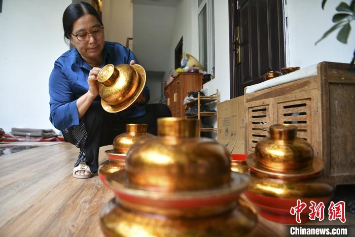 7月22日,魯茸卓瑪制作好的糌粑盒。 中新社記者 劉冉陽(yáng) 攝