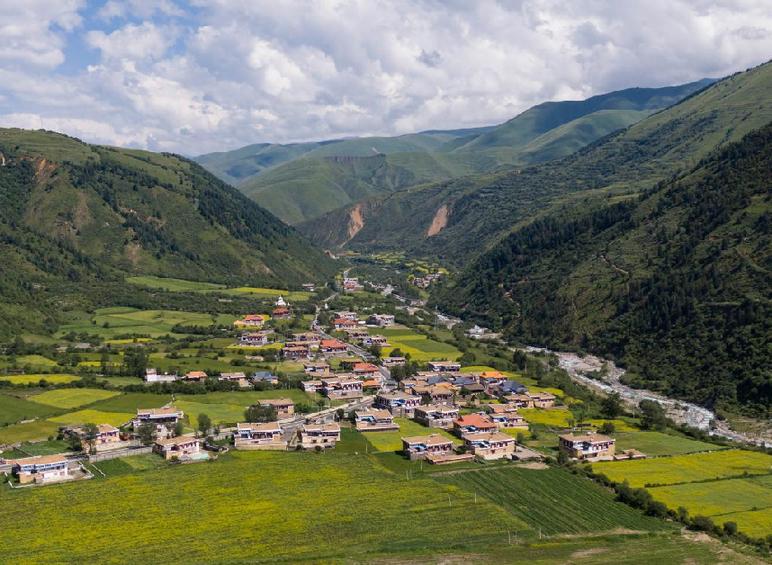 7月25日拍攝的道孚縣鮮水鎮(zhèn)風(fēng)光(無人機(jī)照片)。新華社記者 江宏景 攝