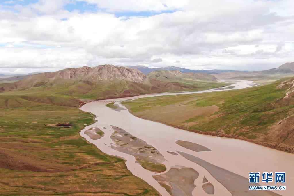 這是7月27日拍攝的長江北源楚瑪爾河一角(無人機照片)。新華社記者 張龍 攝