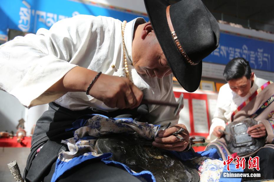 圖為“非遺”工匠展示藏鎖。張?zhí)砀?攝