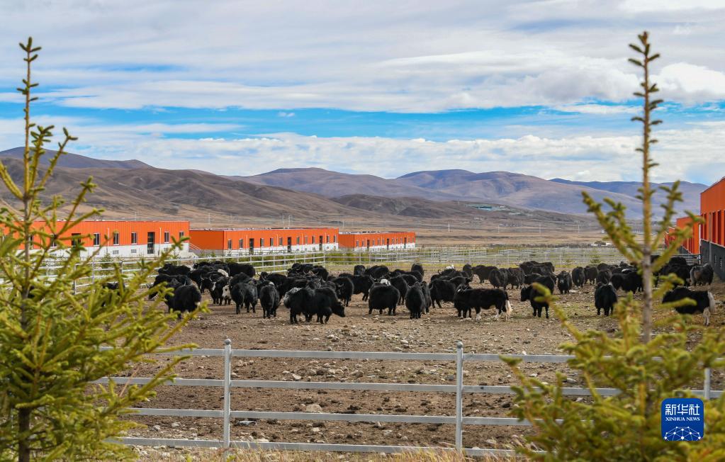 10月20日,在四川省甘孜藏族自治州理塘縣牦牛產(chǎn)業(yè)園區(qū),牦牛群在戶外活動(dòng)場(chǎng)活動(dòng)。新華社記者 王曦 攝